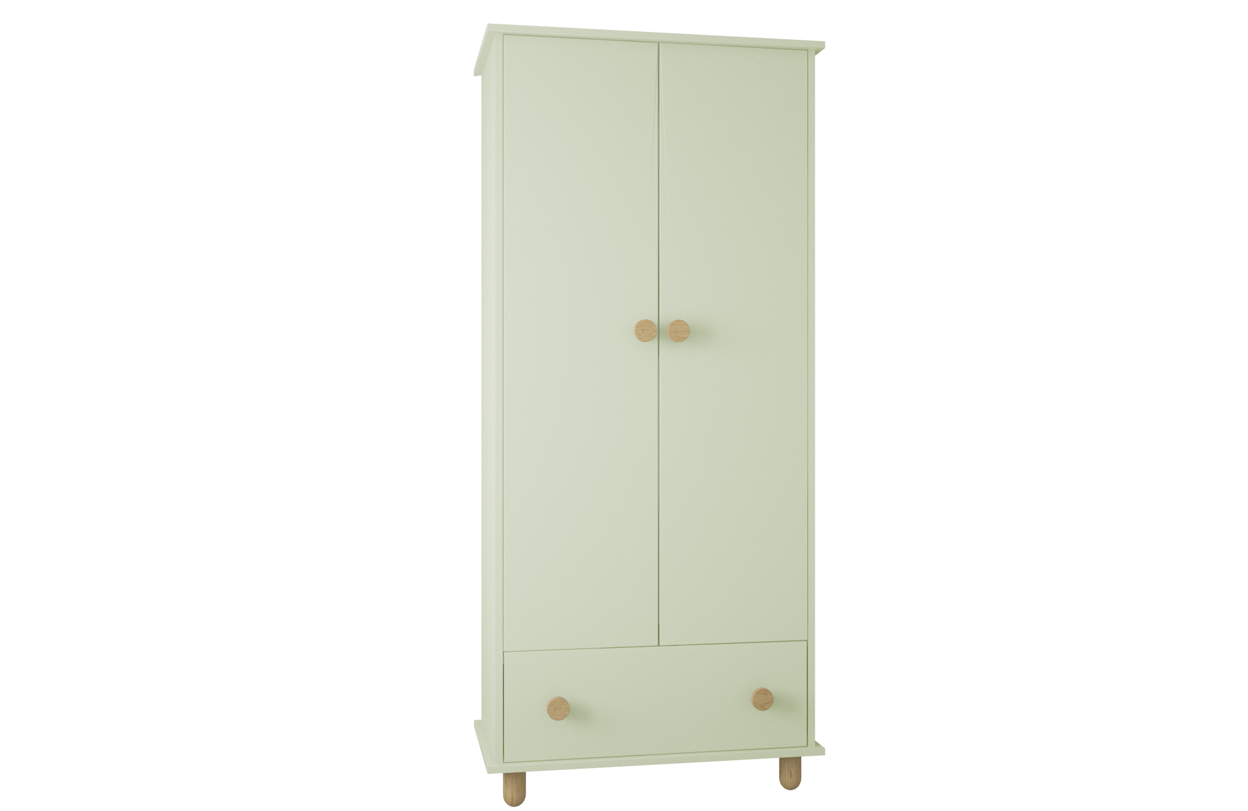 Dulapul Bambi Fistic – aduce un plus de rafinament și funcționalitate în orice încăpere, datorită designului său modern și nuanței elegante de fistic. Aspectul minimalist este completat de mânerele rotunde din lemn natural, care oferă un contrast plăcut și o notă caldă întregului ansamblu.
