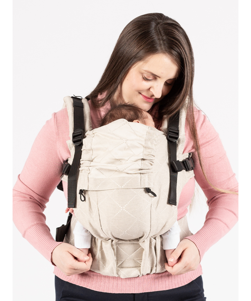 Puntea marsupiului se poate stramta foarte mult astfel incat sa fie potrivita chiar si pentru un nou nascut. Largirea sezutului se poate realiza treptat pe masura ce copilul creste, cu o precizie milimetrica, astfel incat materialul sa ii ajunga intotdeauna din spatele unui genunchi pana in spatele celuilalt genunchi. Ulterior, cu ajutorul a doua seat transformers, baza sezutului copilasului se poate mari atat de mult incat sa fie potrivita purtarii chiar si a unui prescolar inalt, mentinand pozitia ergonomica.